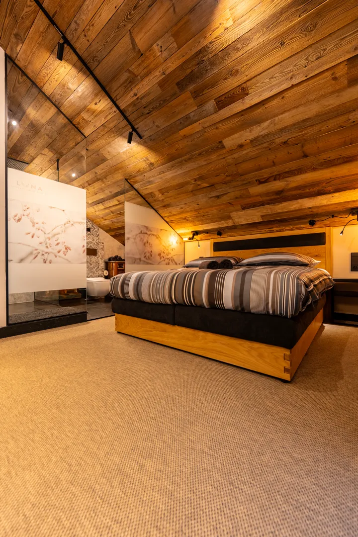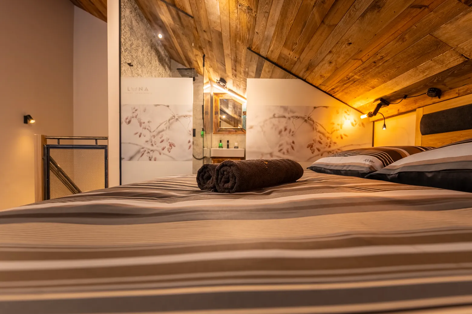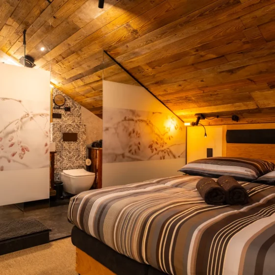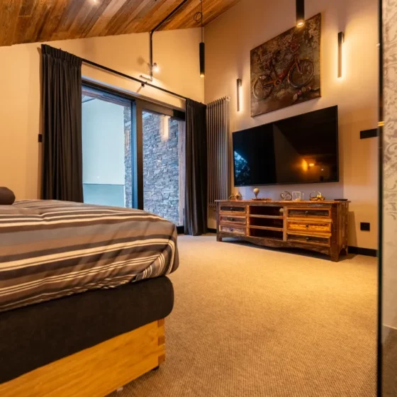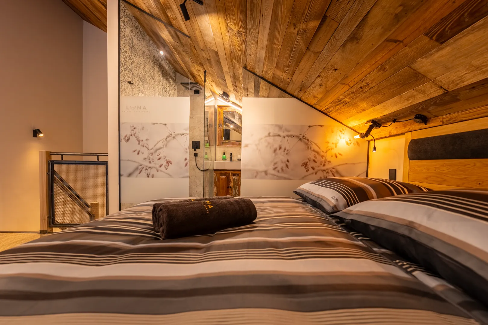 - sypialnia z łazienką na piętrze z indywidualnym tarasem wyposażonym w meble tarasowe